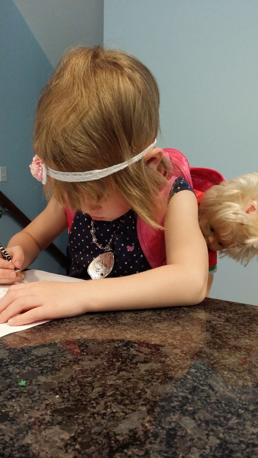 Vivian likes to mimic all of Miriam's homework - she will be teaching the other kindergartners next year.