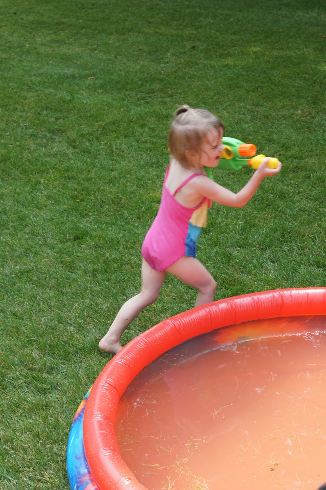 We shared a cookout with Tim's family. Papa, Tim's dad, bought the girls a kiddie pool, squirt guns, and a crazy sprinkler because that's what Papas do.